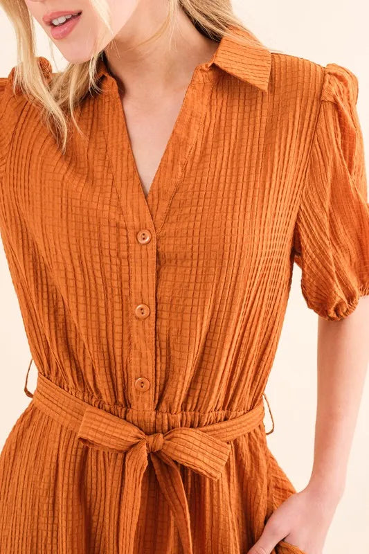 And The Why Waffle Textured Ribbon Waist Midi Dress