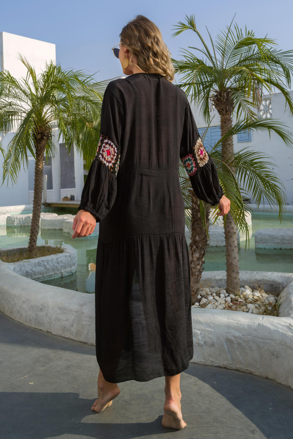 One size: bust 42 in, length 49 in, sleeve length 18 in