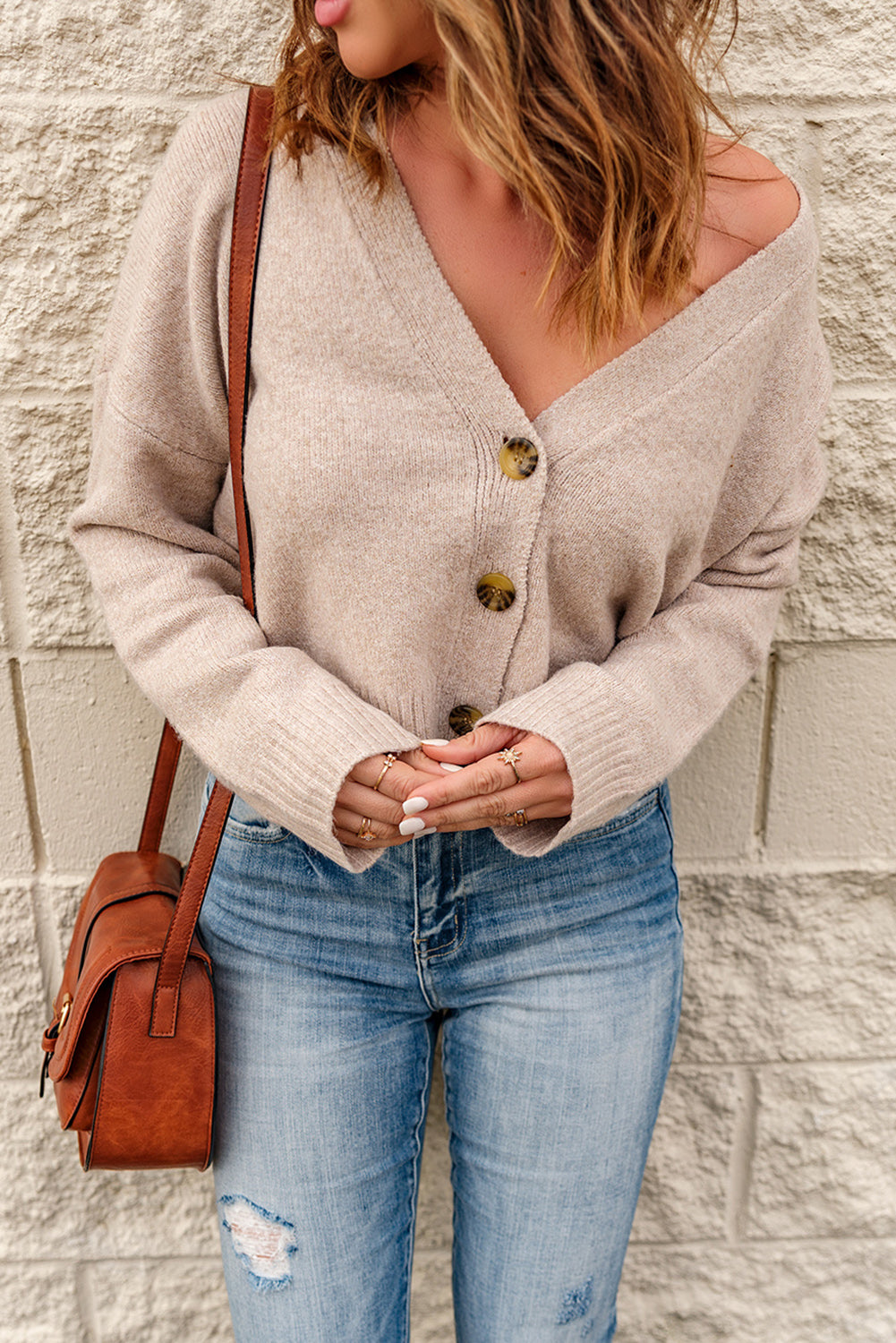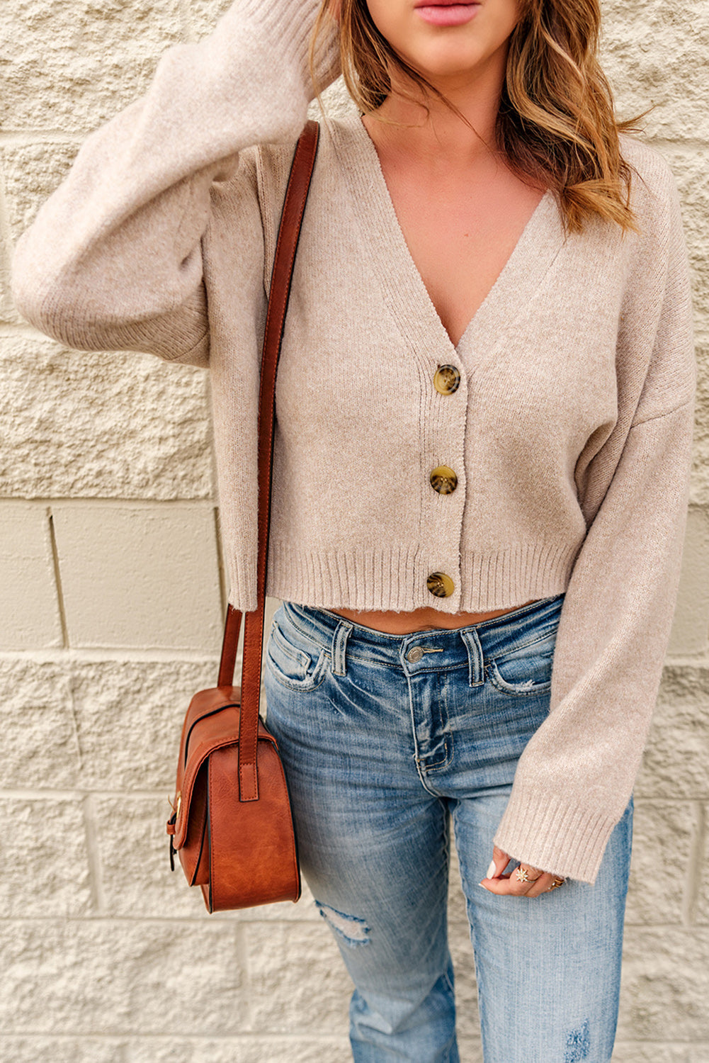 • Load image into Gallery viewer, Button Down V-Neck Cropped Cardigan