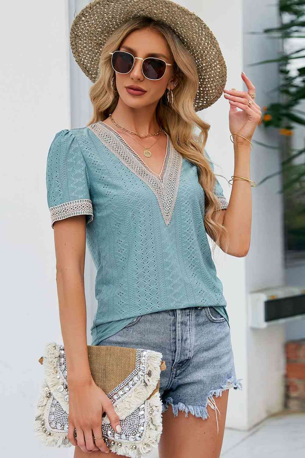 • Neckline: V-neck