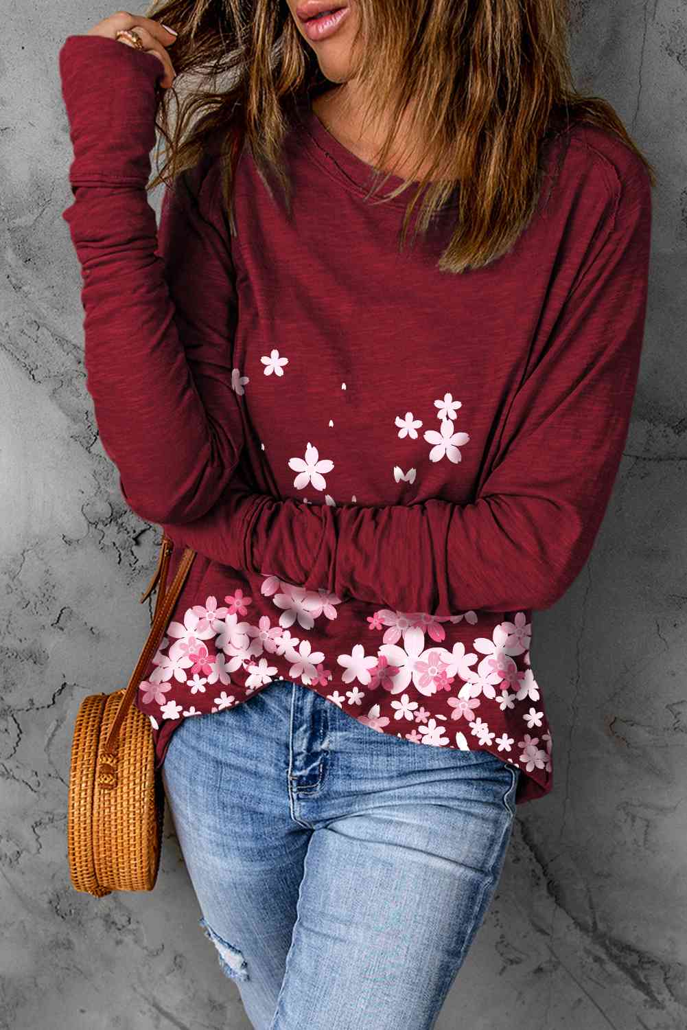 • Load image into Gallery viewer, Floral Round Neck Thumbhole Sleeve Top
