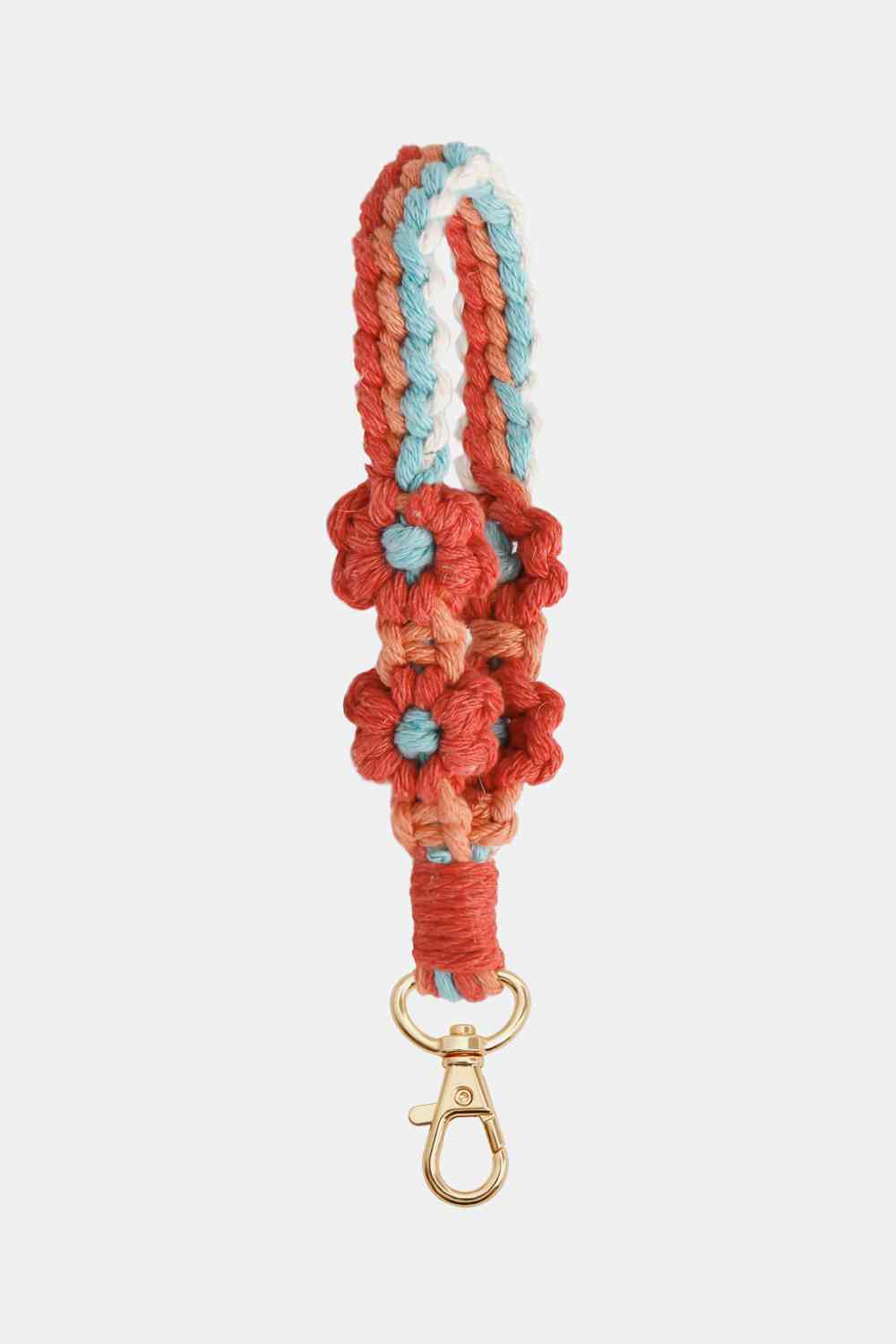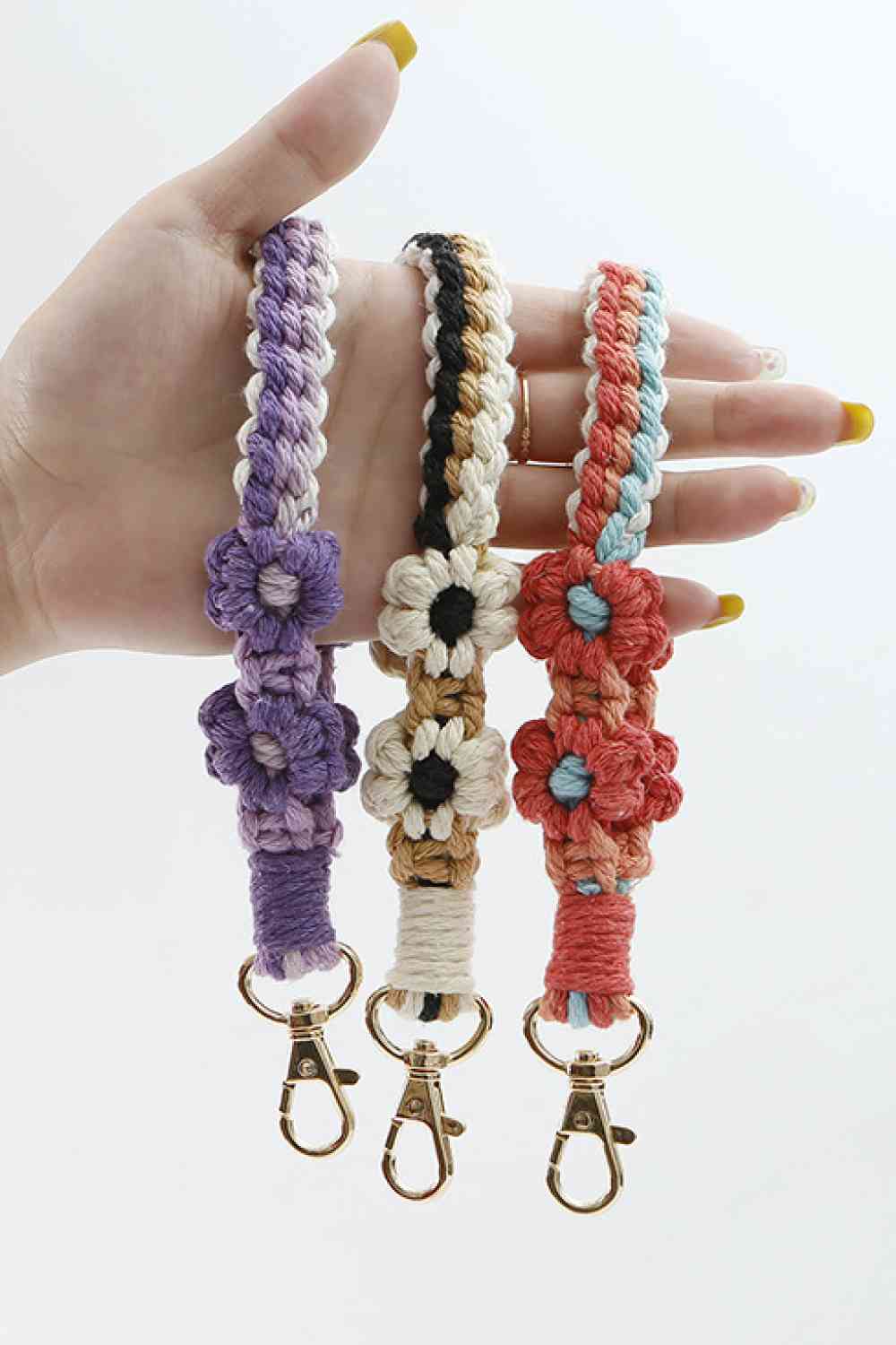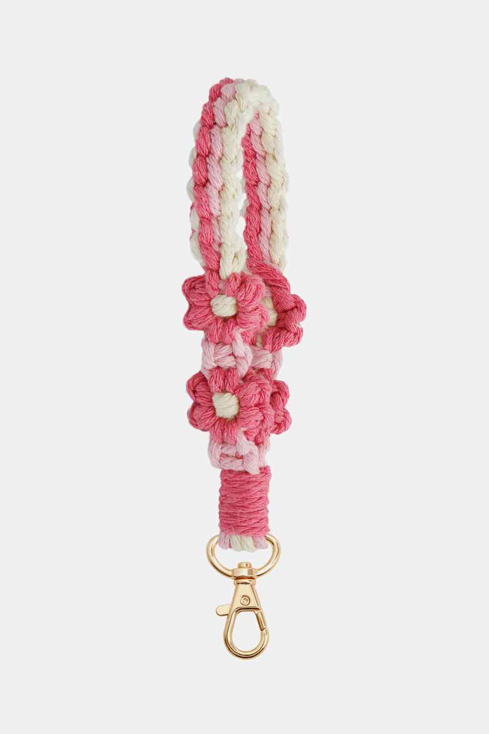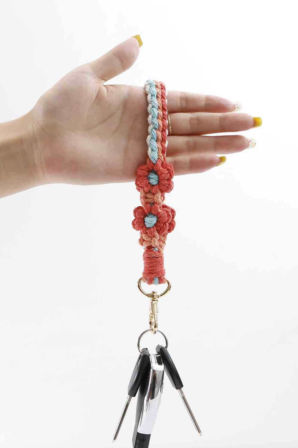 Flower Shape Wristlet Zinc Alloy Closure Macrame Key Chain