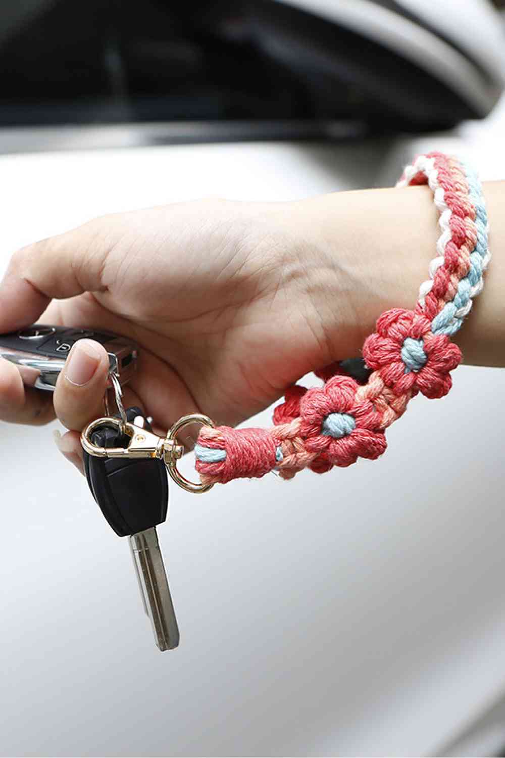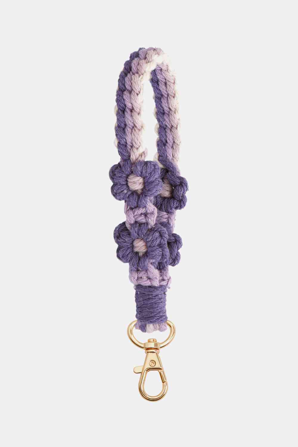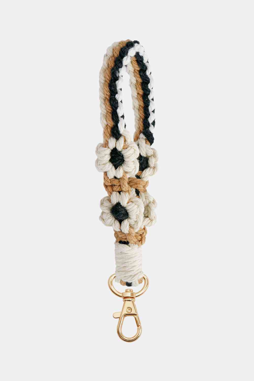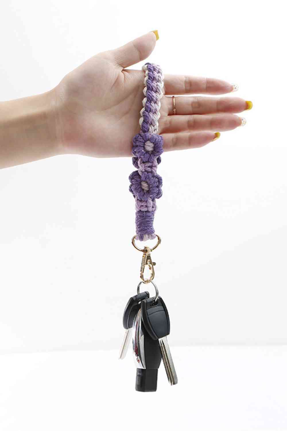 Flower Shape Wristlet Zinc Alloy Closure Macrame Key Chain