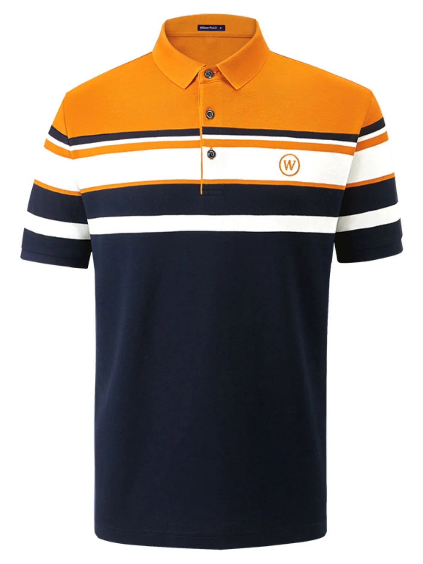 Men's Plus Size Color Block Striped Short Sleeve Polo Shirt