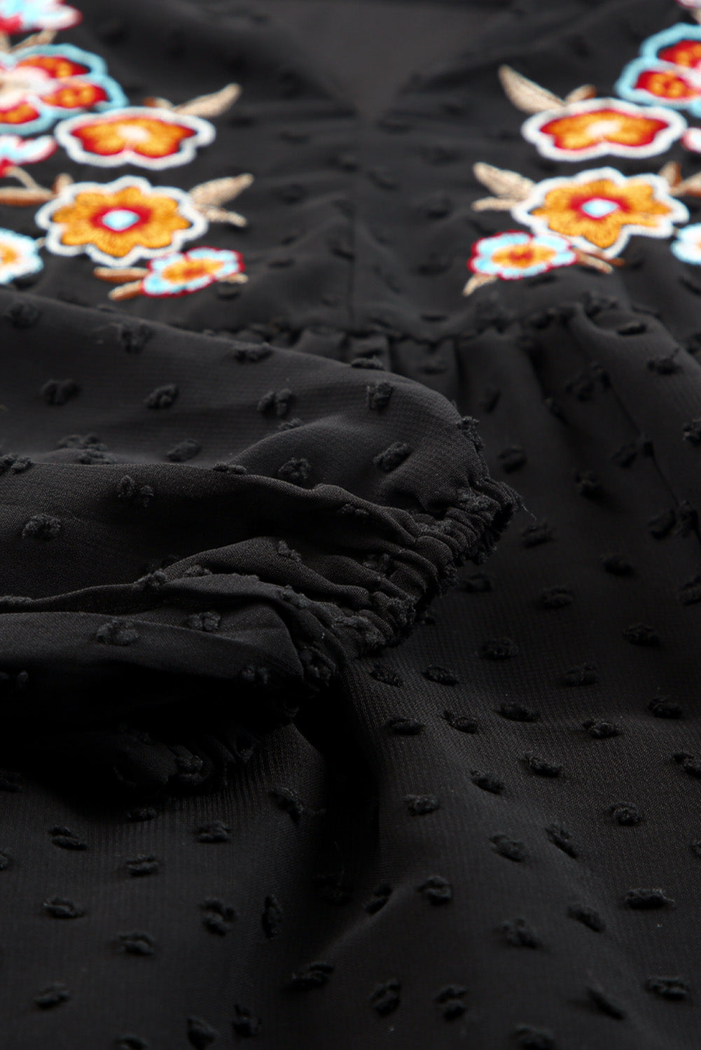 Plus Size Floral Embroidered Swiss Dot Blouse
