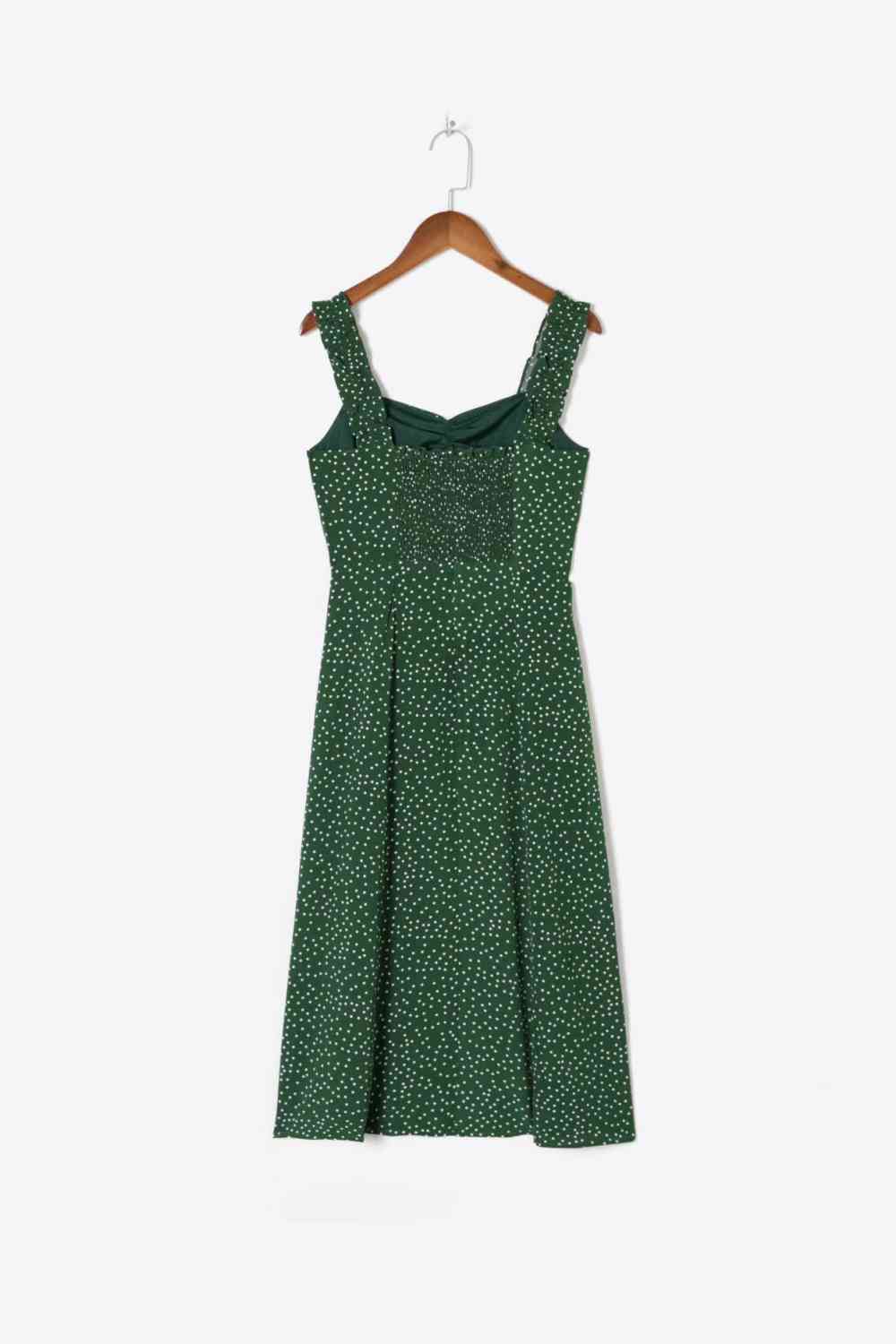 • Load image into Gallery viewer, Polka Dot Ruffle Strap Slit Dress