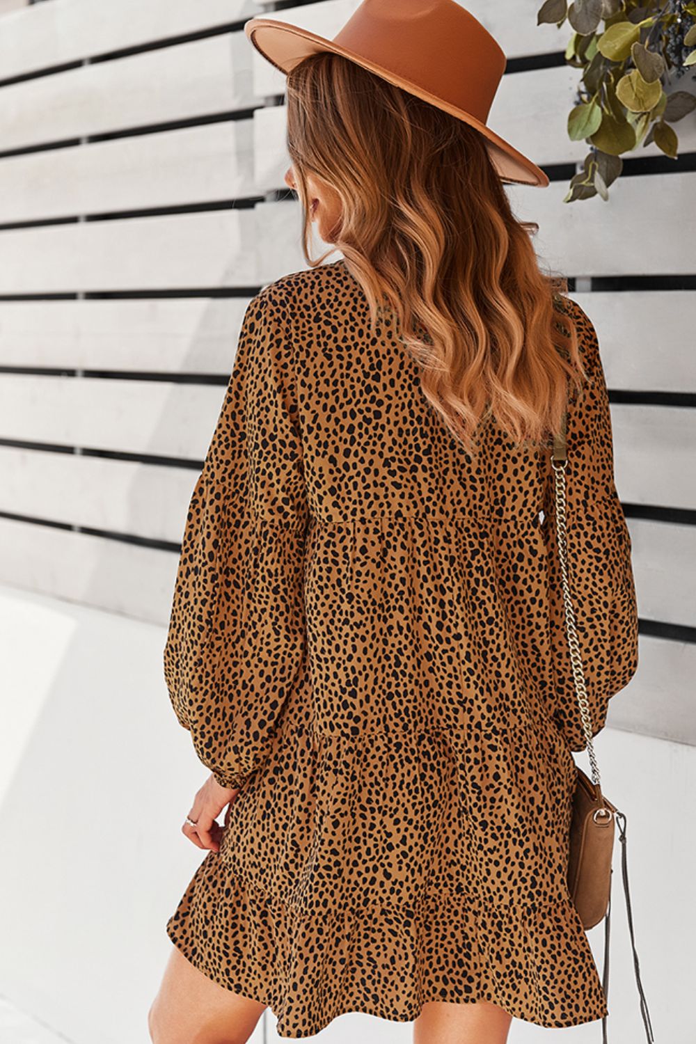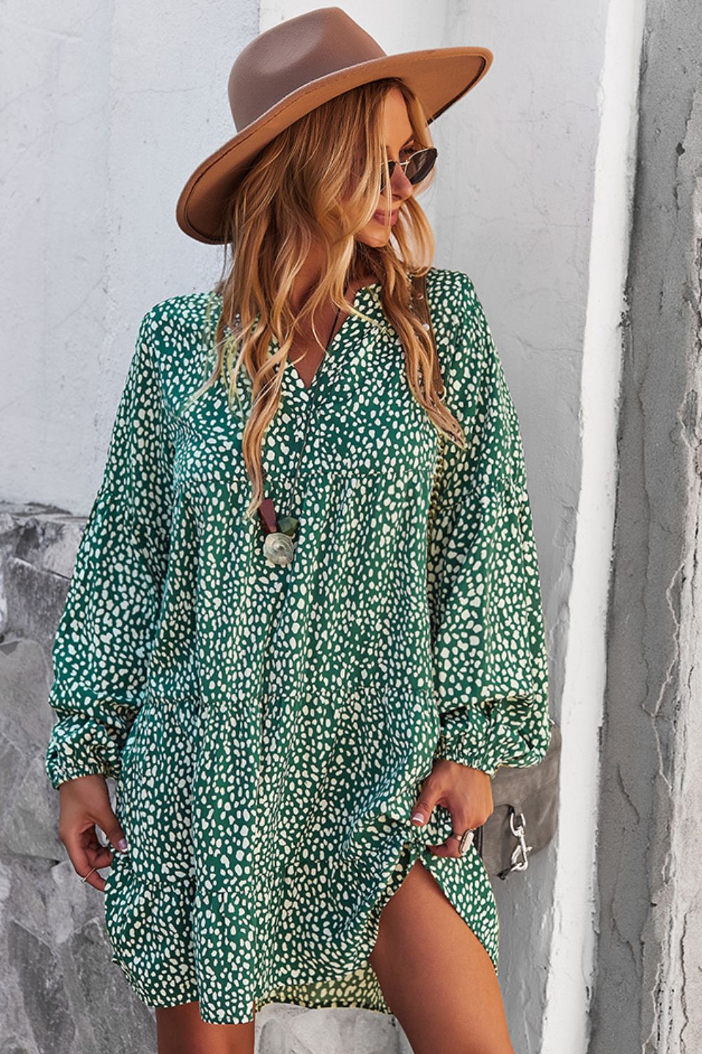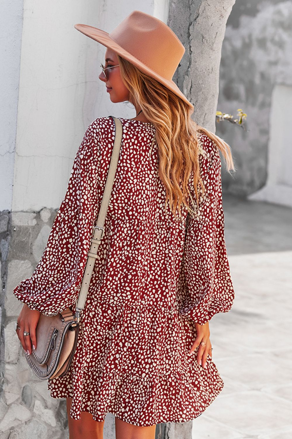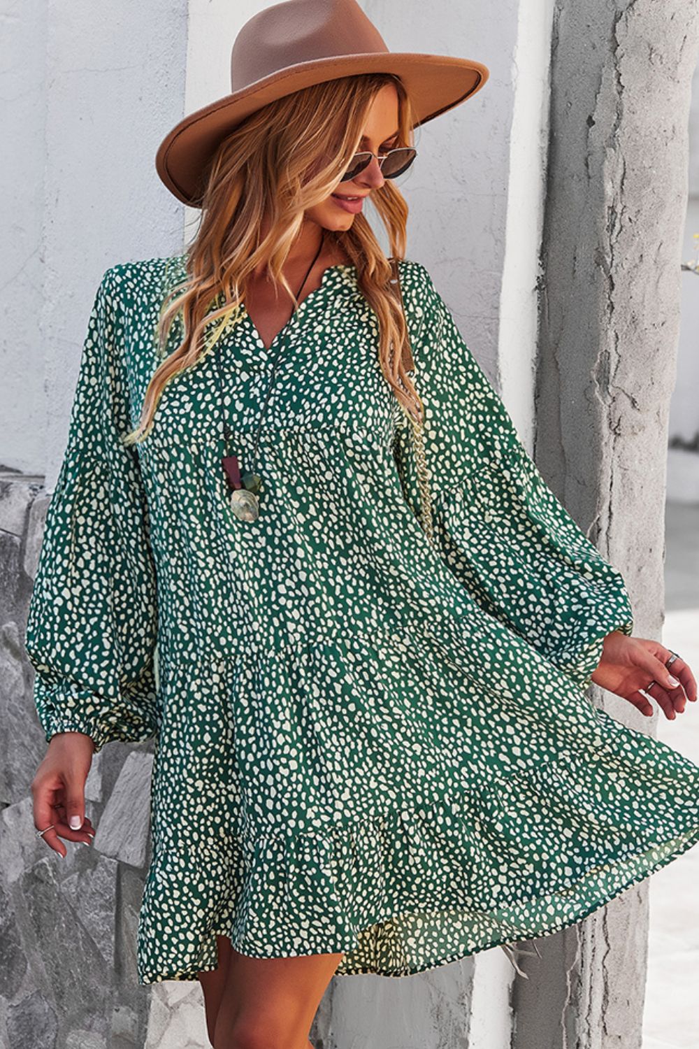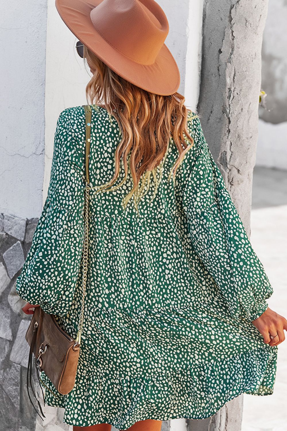 • Load image into Gallery viewer, Printed Balloon Sleeve Ruffle Hem Dress