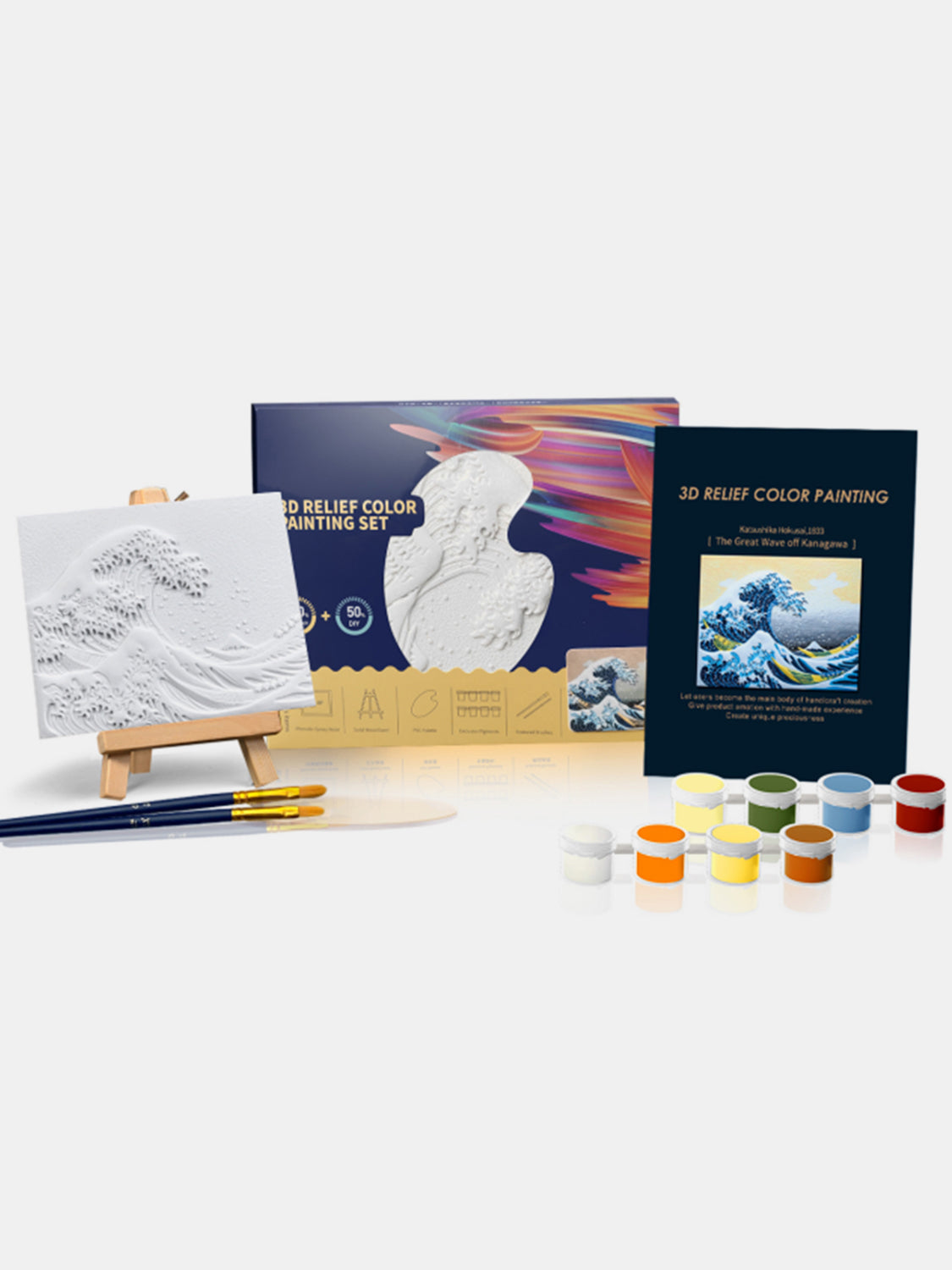 The kit typically includes a canvas with a pre-printed outline of the wave, oil paints, brushes, and instructions for painting the artwork. The 3D aspect of the painting may involve adding layers of paint or other materials to create a sense of depth and movement in the wave. By following the provided instructions and using the materials supplied in the kit, you can enjoy the process of painting and create your own interpretation of this famous masterpiece. It's a fantastic way to explore your artistic skills and create a stunning piece of art to display in your home.