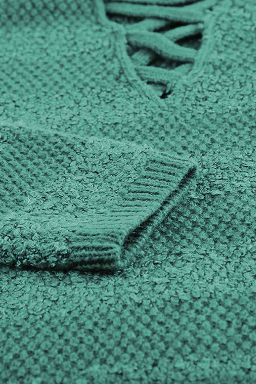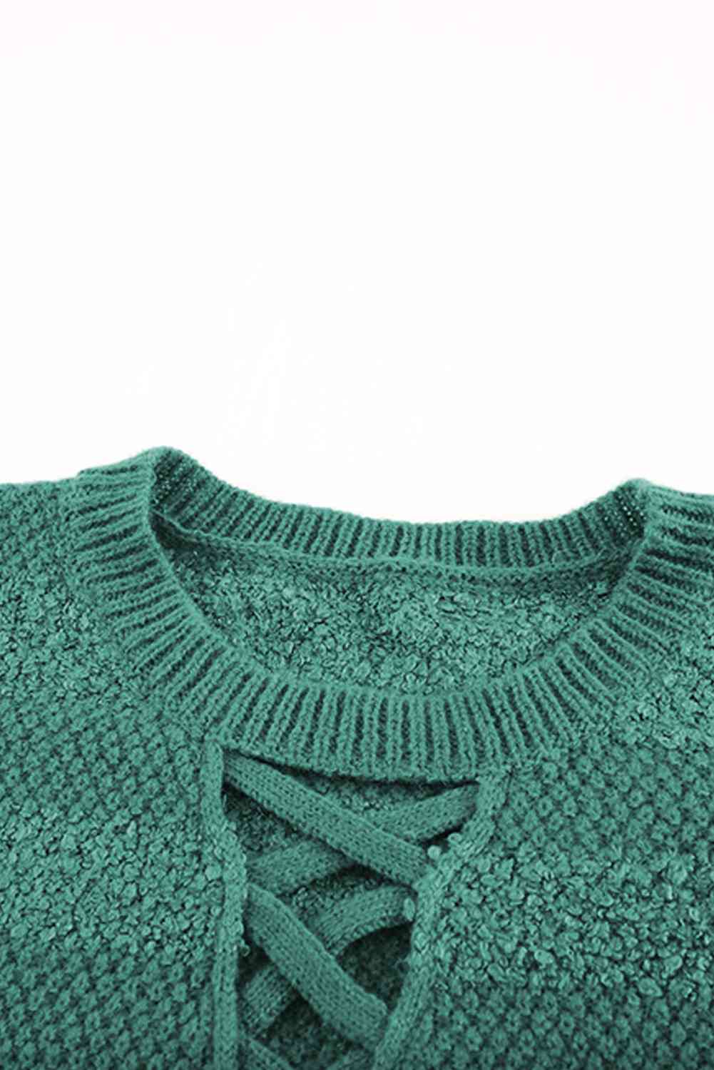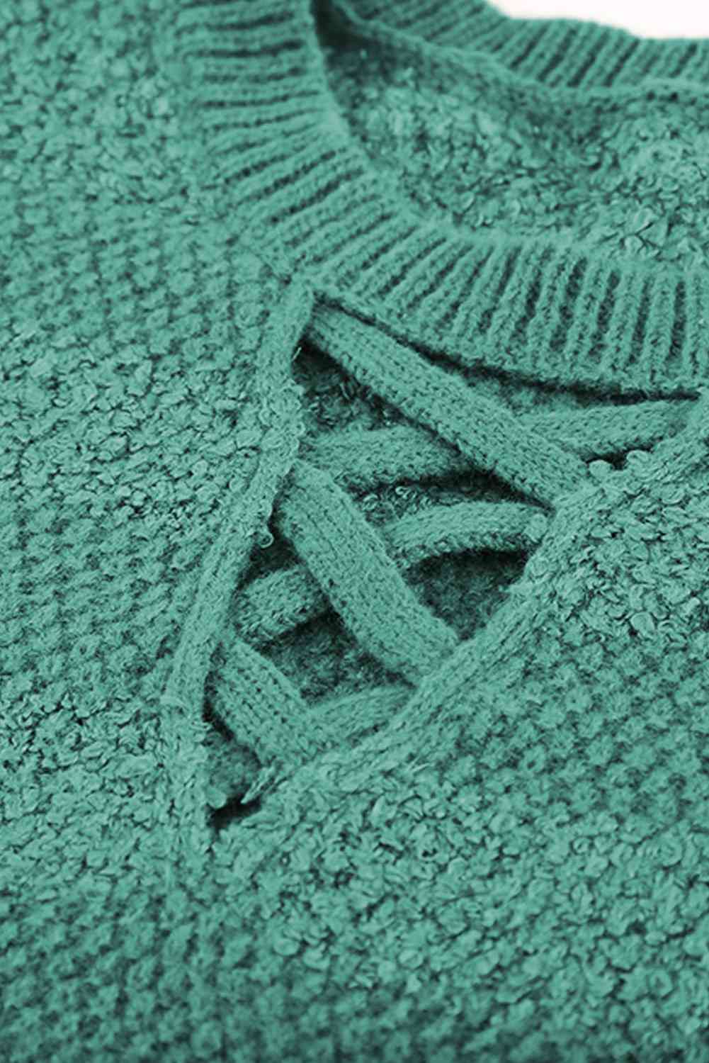 Round Neck Dropped Shoulder Crisscross Pullover Sweater