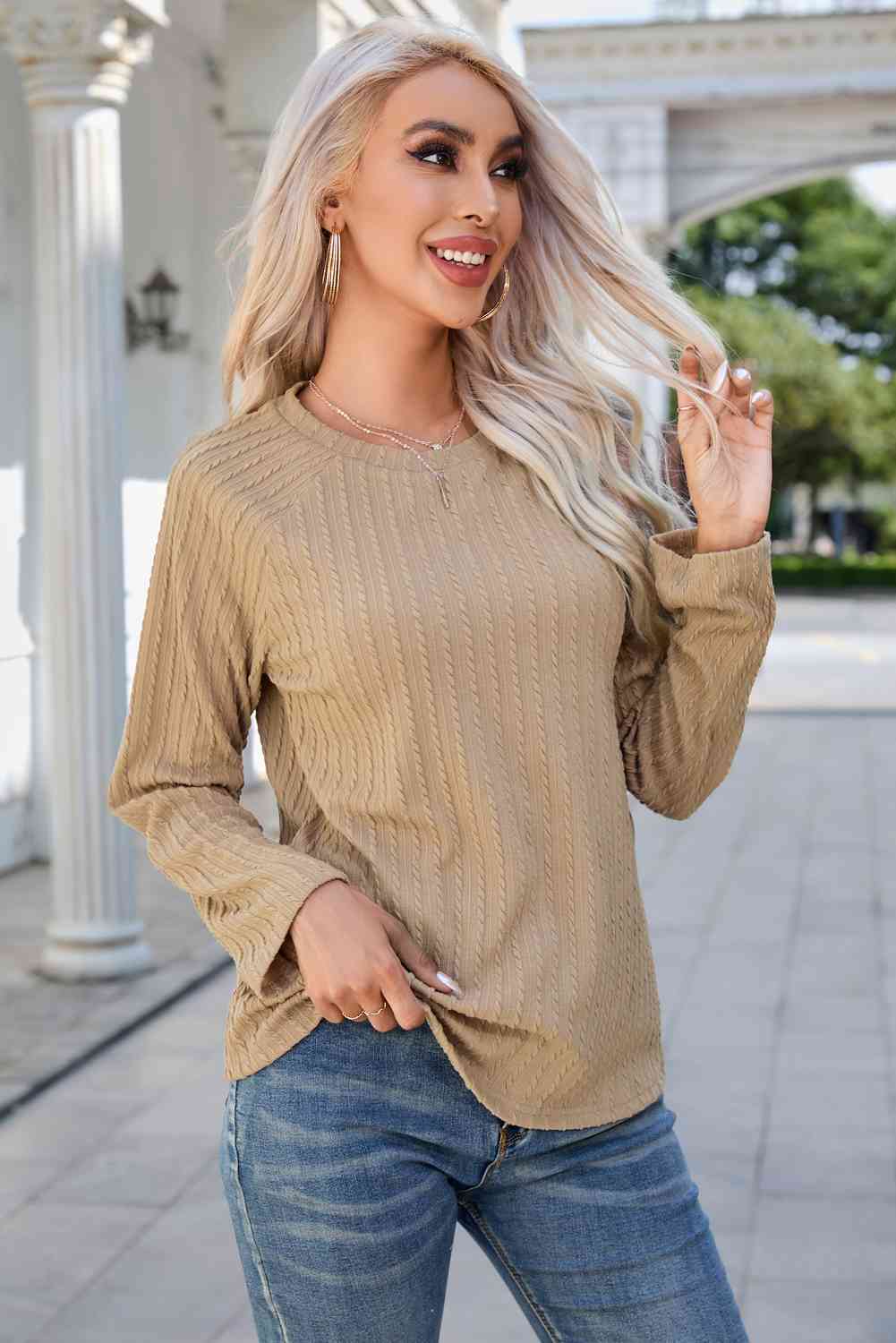 • Load image into Gallery viewer, Round Neck Raglan Sleeve Ribbed Blouse