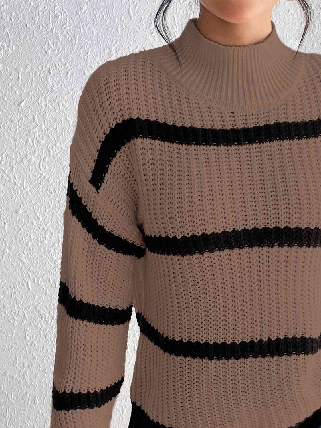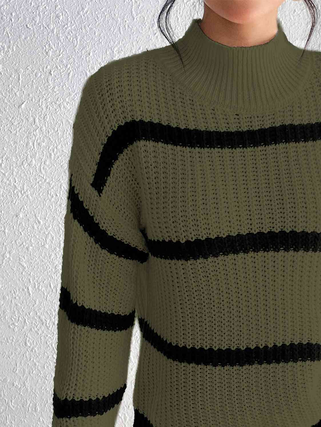 • Load image into Gallery viewer, Striped Mock Neck Sweater