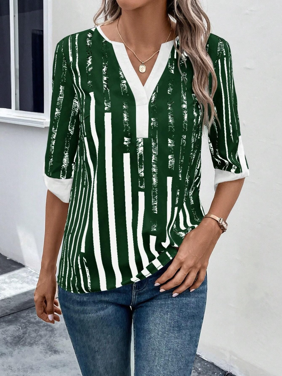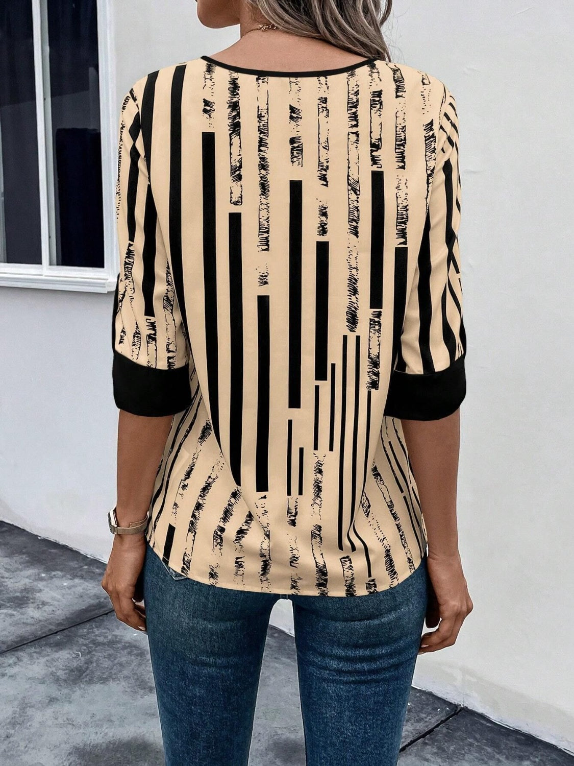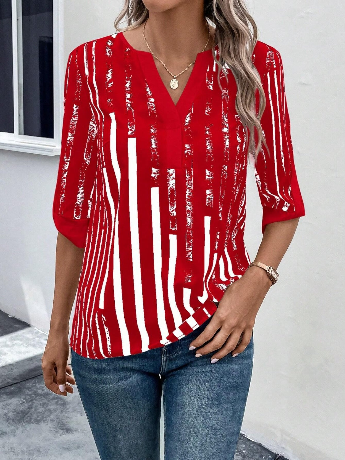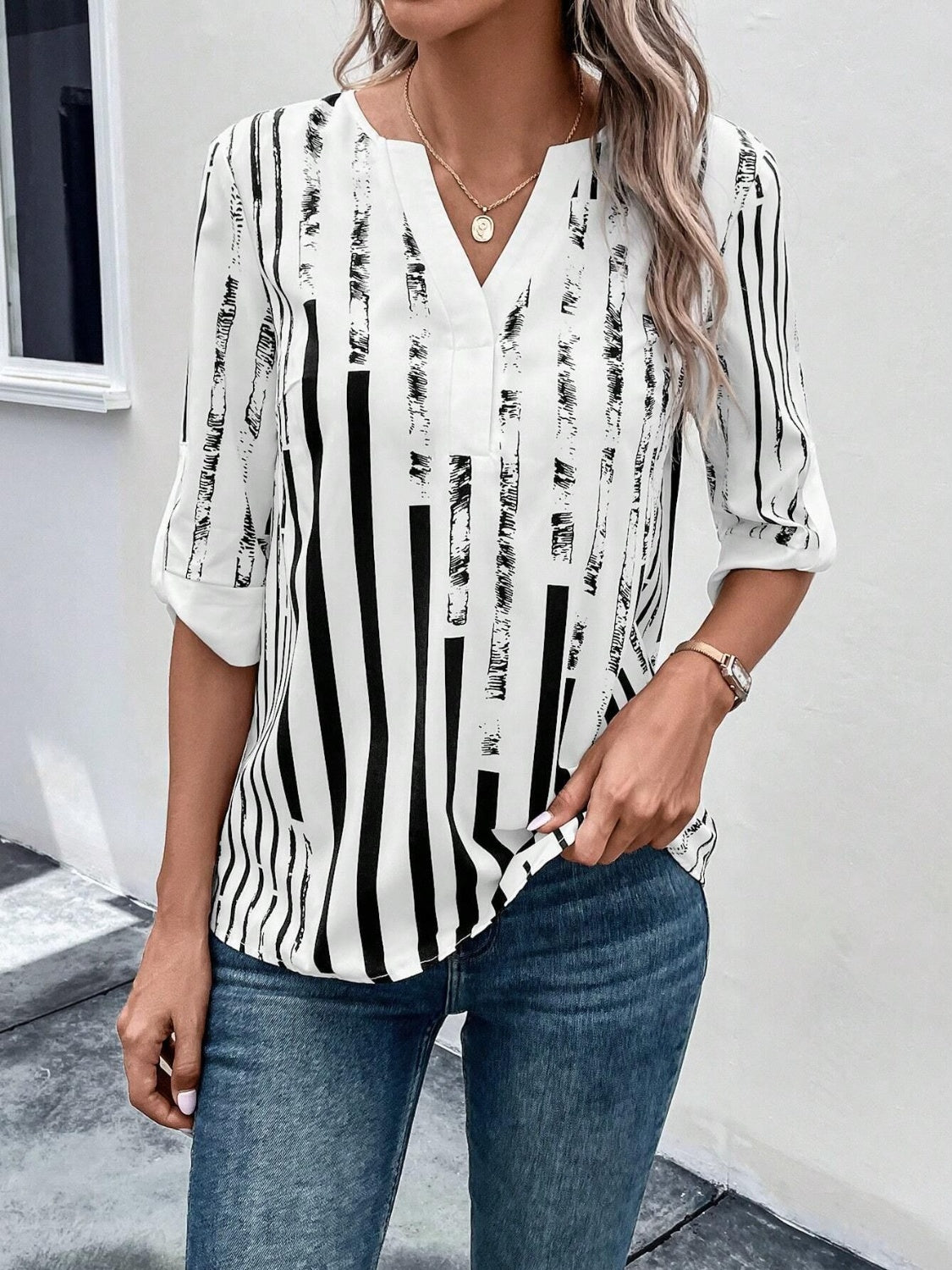 • Load image into Gallery viewer, Striped Notched Half Sleeve Blouse