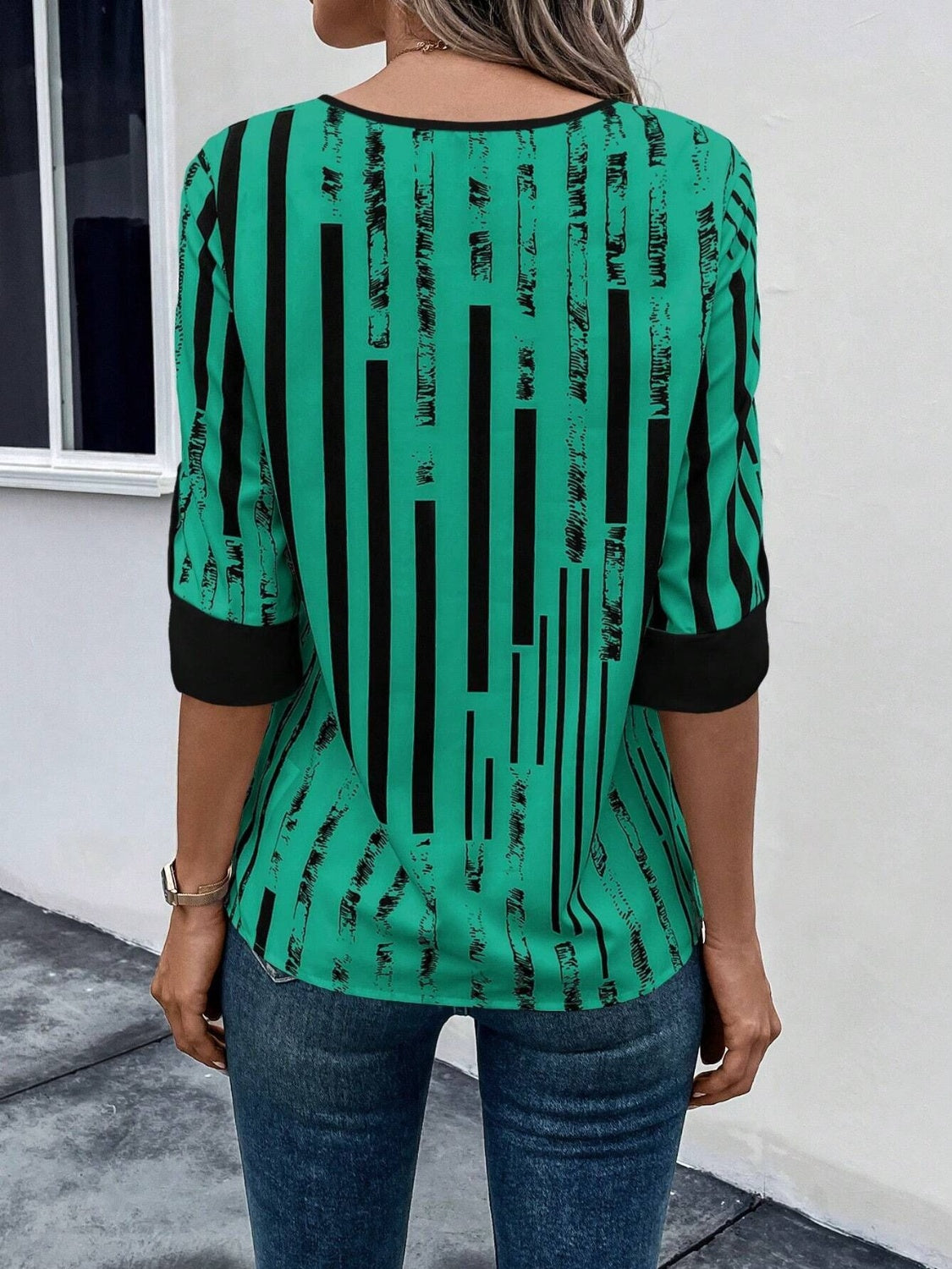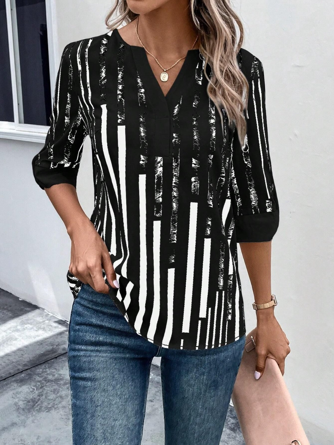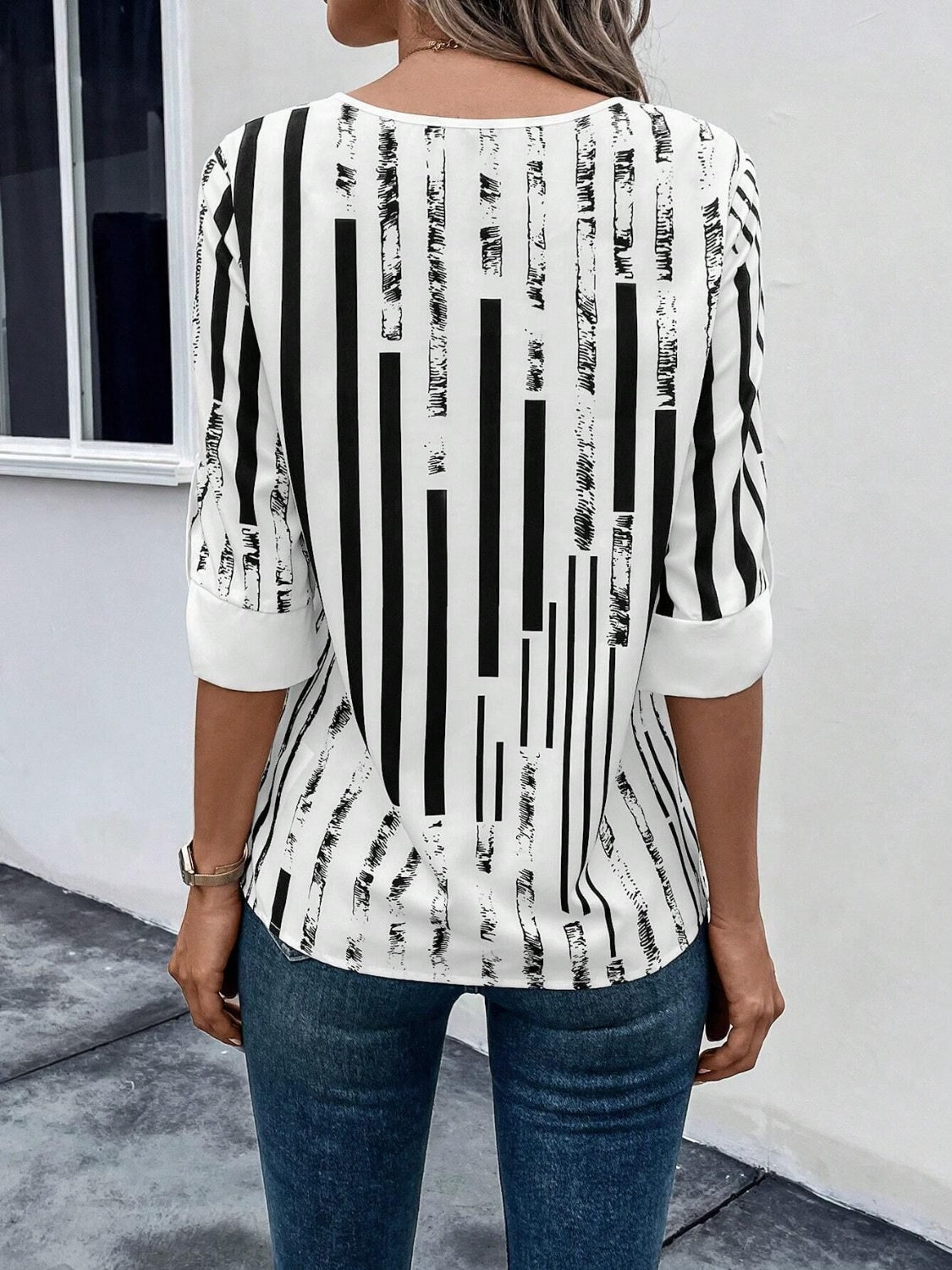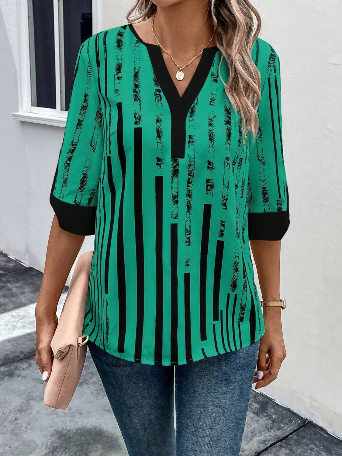 • Load image into Gallery viewer, Striped Notched Half Sleeve Blouse