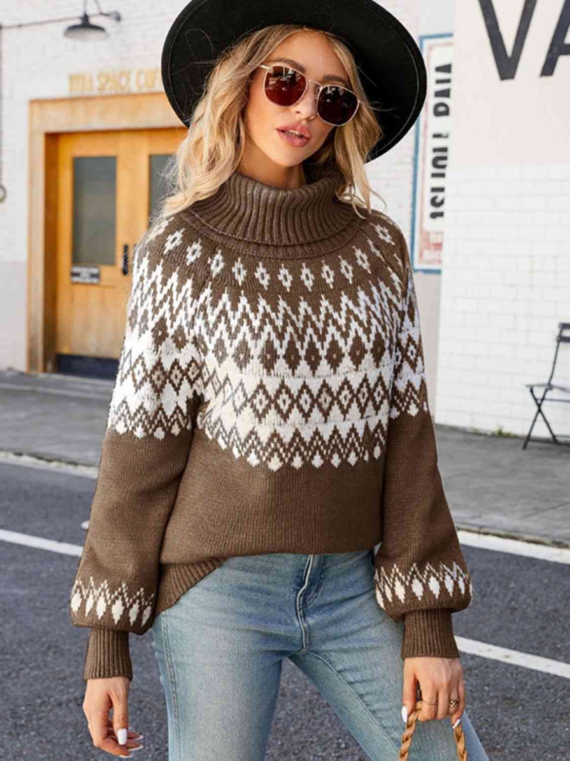 • Load image into Gallery viewer, Turtleneck Lantern Sleeve Sweater