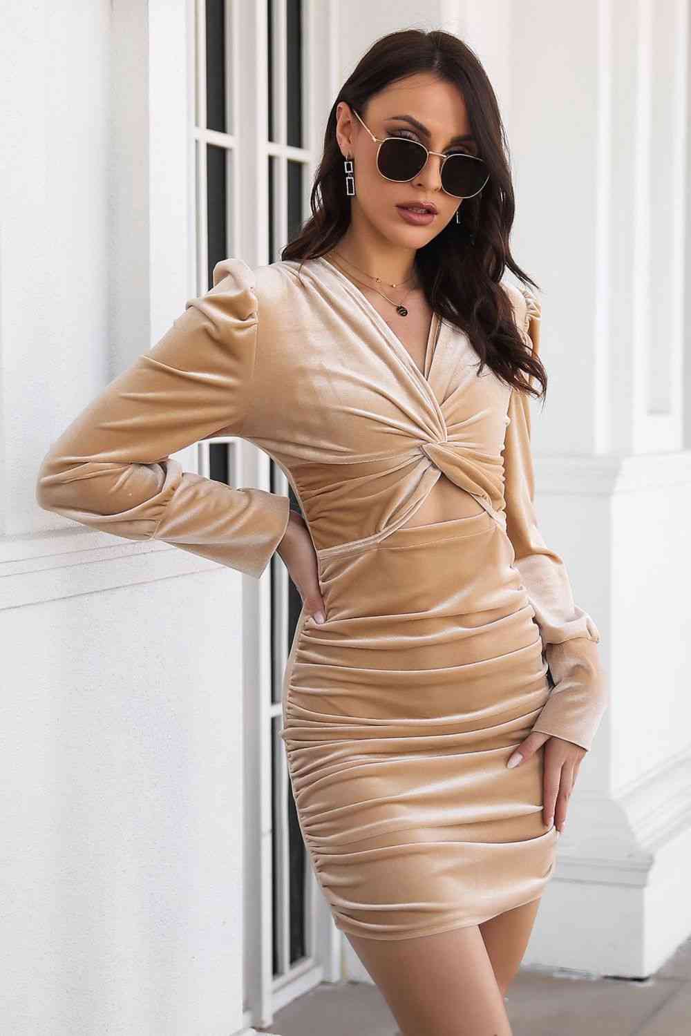 • Load image into Gallery viewer, Twist Front Cutout Long Sleeve Dress