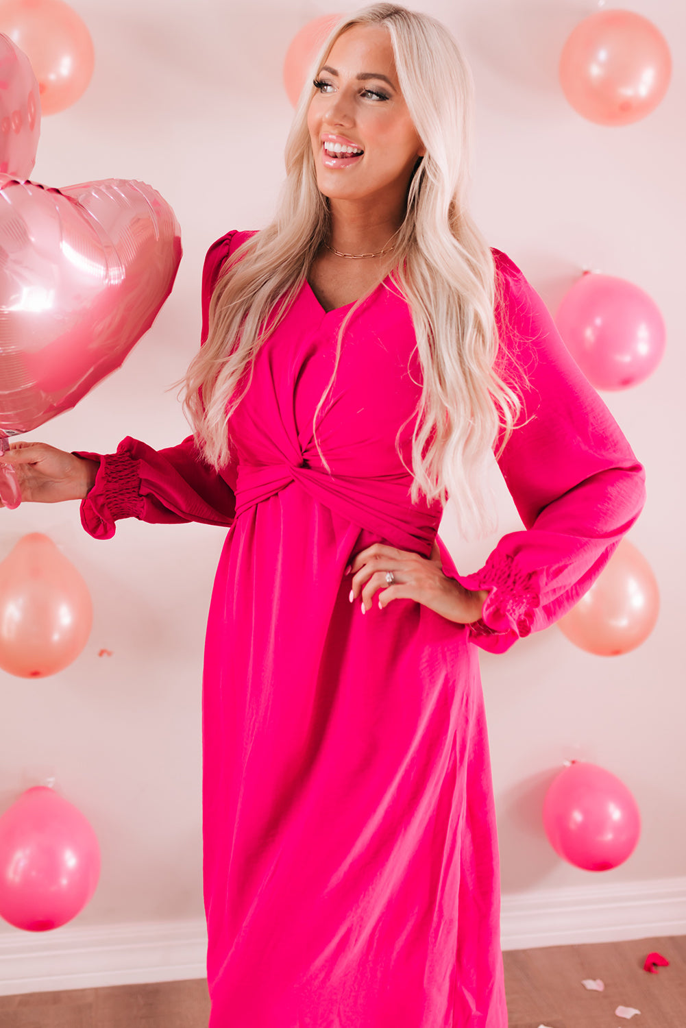 Twist Front V-Neck Flounce Sleeve Dress