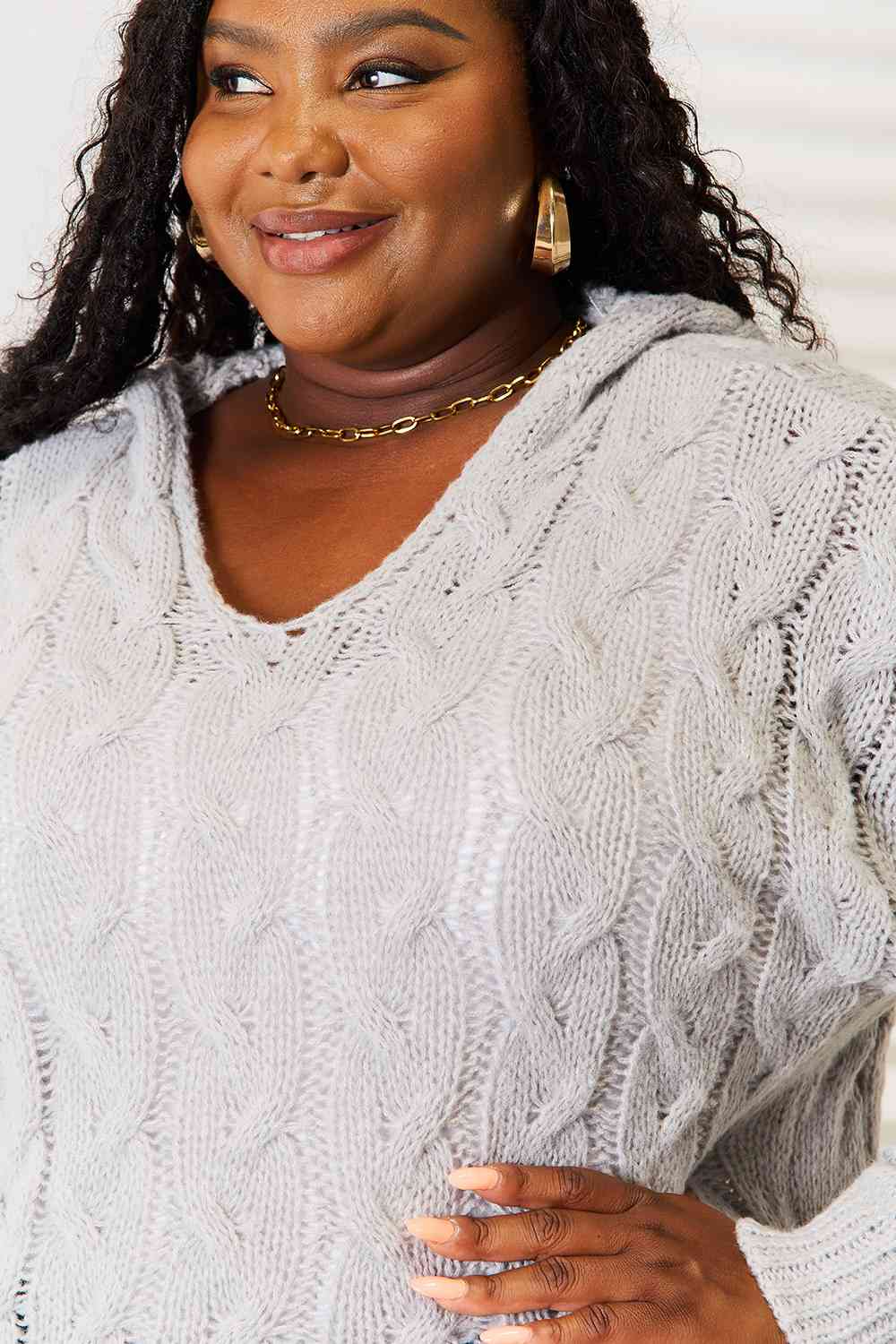 • Load image into Gallery viewer, Woven Right Cable-Knit Hooded Sweater